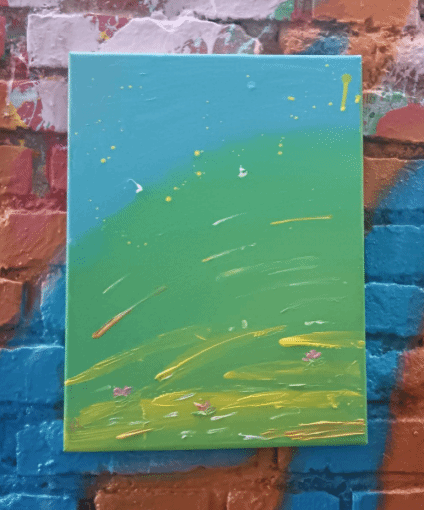 活动现场,学生们以大理的苍山云纹、洱海蓝调为基底,开始了一场沉浸式创作实践。学生们在展方提供的画布上,将写生速写转化为抽象色块,融入当地扎染纹理元素;在流体画体验区,借助颜料的自然流动特性,模拟洱海波纹的层次渐变;泼彩画环节中,学生尝试将传统水墨泼洒技法与丙烯颜料结合,复刻写生中捕捉的大理雨季山雾朦胧感,作品获展方陈列推荐。