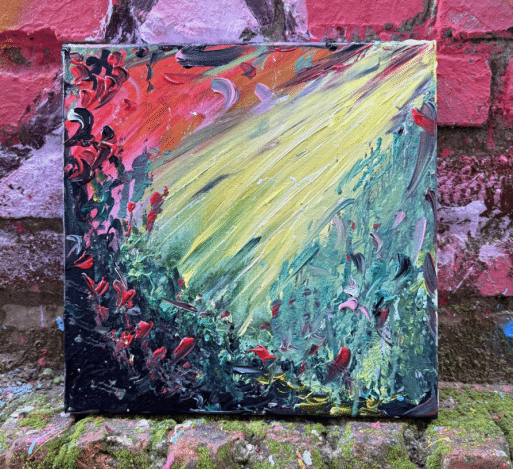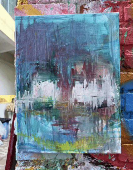 创作过程中,学生们围绕“材料随机性与自然意象表达”与在地创作者交流,既实践了抽象技法,也将写生的具象观察转化为写意创作语言,实现“户外写生—室内创作”的有机衔接。