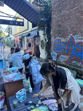 此次参与不仅是写生课程的创作延伸,更让学生在自助式艺术形式中探索了色彩与肌理的表达可能,为艺术设计的材料实验积累了宝贵经验,真正做到了学以致用、知行合一。
