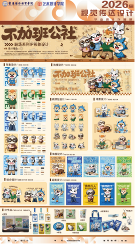 指导老师:马悦不加班公社系列ip设计以萌趣职场化形象为载体,聚焦职场人加班焦虑痛点传递 “高效工作、拒绝无效加班” 的核心理念。通过具象化设计适配职场多场景,让职场人共鸣。