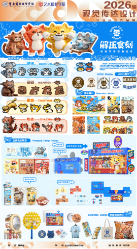 本设计以“解压食刻”为主题,围绕年轻群体的情绪需求展开,通过情绪化IP猫型角色、插画视觉与系列包装设计,构建“情绪小卖部”式的互动零食包装系统,增强产品的趣味性、识别度与情绪表达。