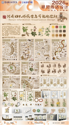 本设计以河南四大怀药为对象,立足中华优秀传统文化传承发展的时代需求,挖掘生态价值、药用智慧与文化内涵,将其融入当代信息可视化设计之中,围绕四大怀药的植物特征、炮制工艺、文化典故等信息进行系统梳理。
