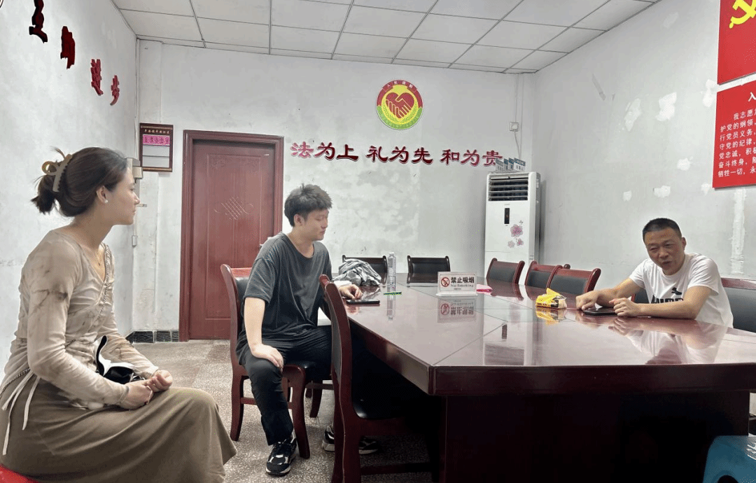 团队以“镜头助农、手绘润心”双线并行:上午6:00—9:30,摄影组穿梭梨园,为正值采摘季的翠冠梨拍摄宣传片,用全景与特写记录“硕果压枝”的丰收景象;劳作组则挽起裤脚,帮果农分拣、套网、装箱,一筐筐翠冠梨在团队成员手中传递,汗水与欢笑同频。10:00,指导老师樊林鑫、封灿与平安镇政府党支部书记胡平在镇会议室对接后续安排。